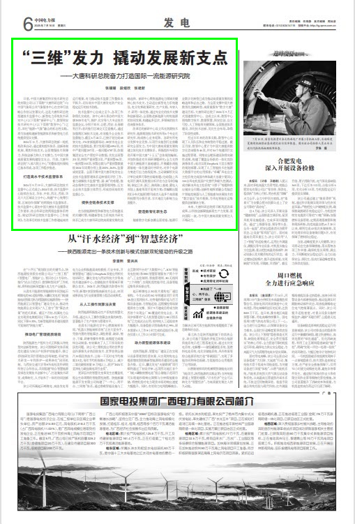 [中国电力报]“三维”发力 撬动发展新支点—大唐科研总院奋力打造国际一流能源研究院