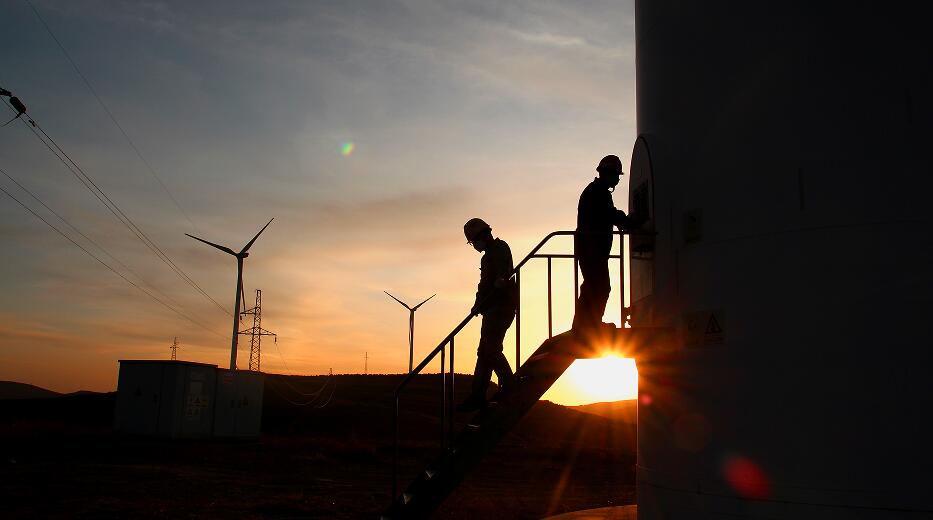 夕阳下的风场守护者