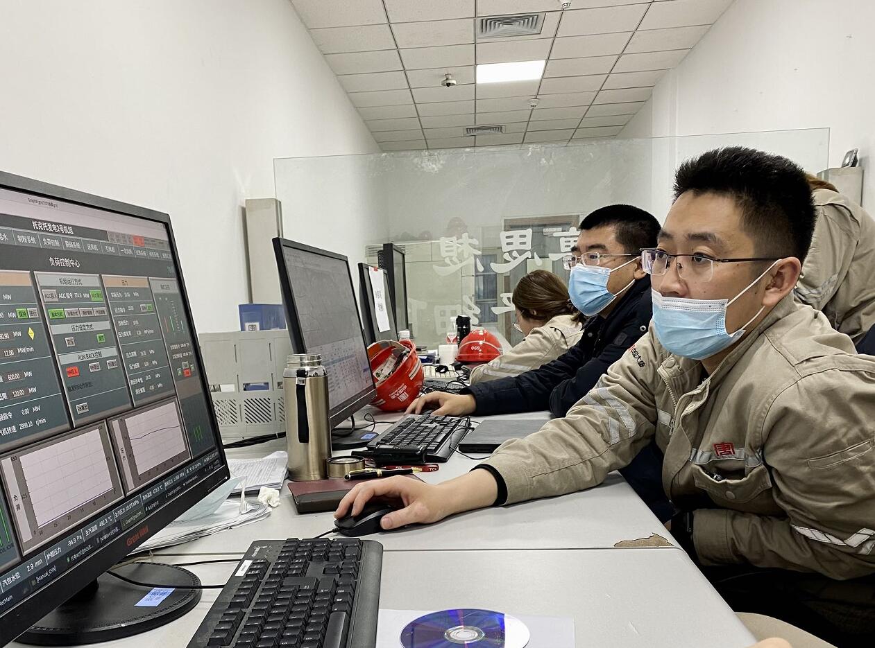 科研人员在托克托电厂2号机组工程师站检查画面