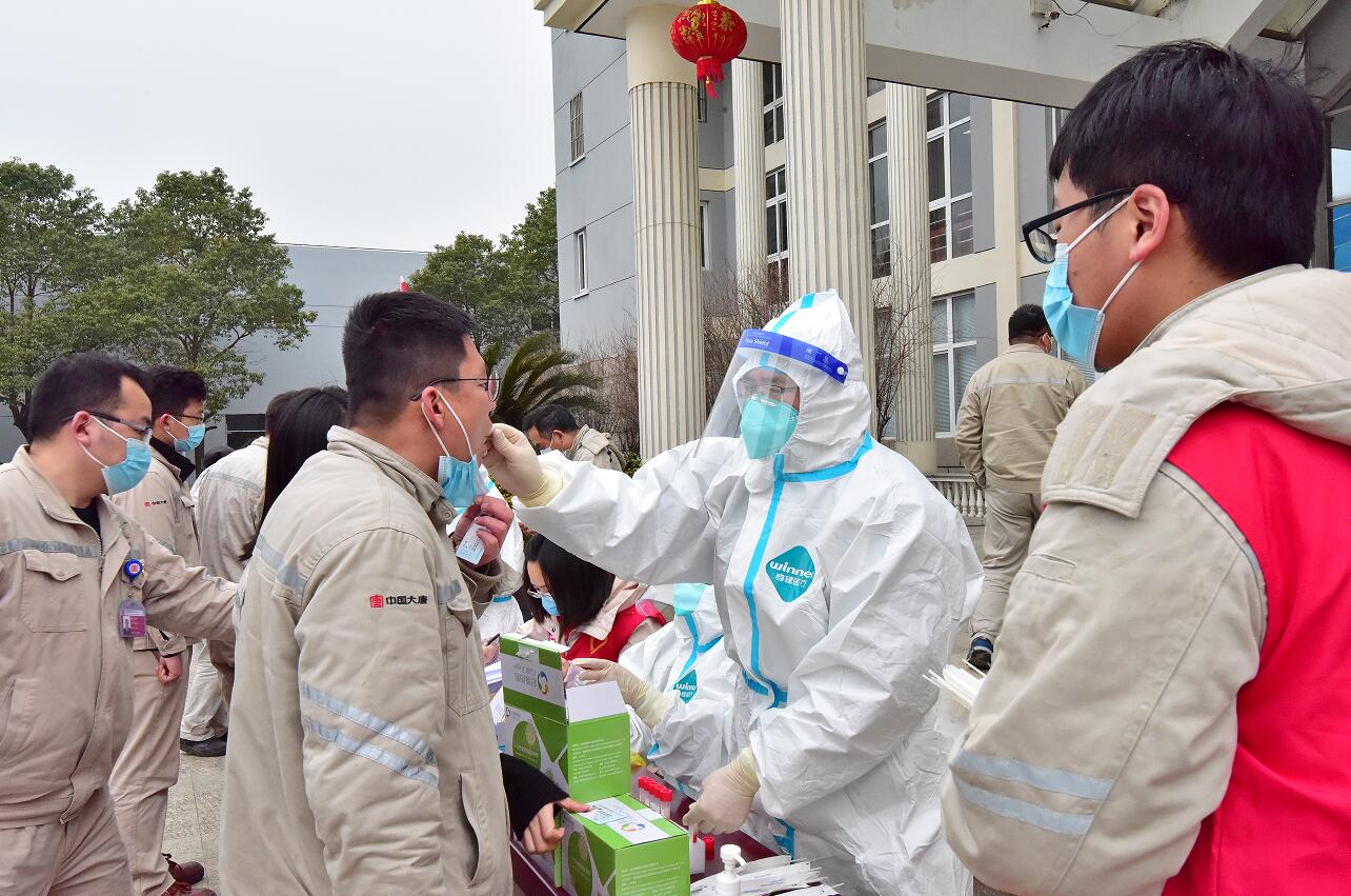 23日,在厂区临时核酸检测点,防疫小组正在有序指挥着分批前来检测的人员,职工们积极配合,采样工作井然有序。