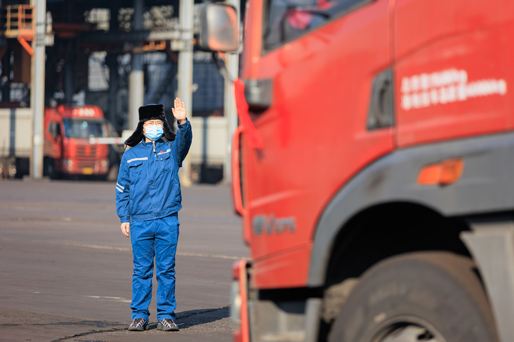 燃料人员有序指挥汽车煤入厂