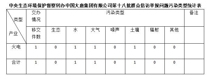 2025年6月27日,中央第七生态环境保护督察组向fun88集团有限公司移交第十八批群众信访举报件,共计1件,为来电举报,涉及水问题1个、大气问题1个、土壤问题1个。所有举报件办理工作已第一时间进入调查核实办理程序,办理情况将按照相关要求反馈督察组,并及时向社会公开。